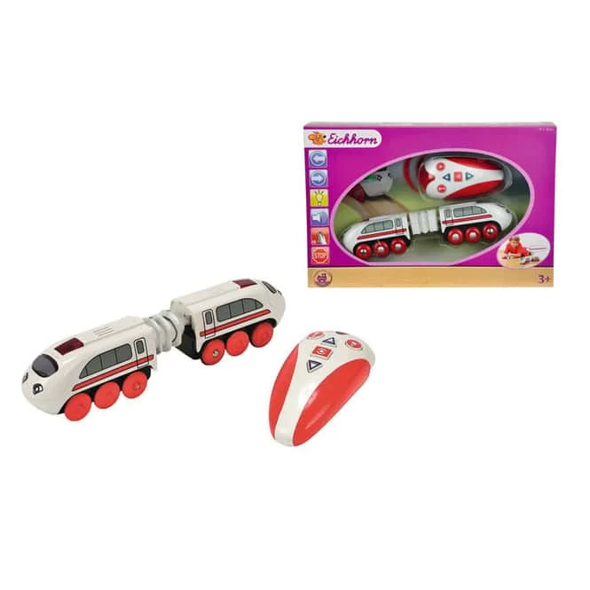 Seid ihr auch so begeistert von Zügen? Mit der Eichhorn Infrarot-Lok werdet ihr ein tolles Zugerelebnis erfahren. Die moderne Holz-Lok von Eichhorn wird mit einer Infrarot-Fernsteuerung bedient. Durch die Länge von 20,5 cm ist fühlt man sich direkt wie an einem Bahnhof und durch die 5 Funktionen wie: Start, Stop, Vorwärts, Rückwärts und den Sound ist das Zugerlebnis mit dieser Lok einfach einzigartig und realistisch. Der Infrarot Zug ist auf allen Eichhorn Schienenbahnen bewegbar.