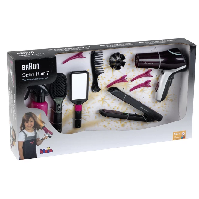 Spiegel, Wasserspritze und Haarklammern runden das Set zusätzlich ab. Die Firma Braun ist als Hersteller von Elektrokleingeräten äußerst beliebt. Und da Kinder es lieben, wenn ihr Spielzeug genauso aussieht wie das, was die Eltern benutzen, gibt es von Theo Klein tolles Braun-Spielzeug rund um das Thema Haarpflege.
