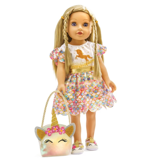 Die Einhorn-Puppentasche lässt sich besonders gut mit den Kleidern „Einhorn Goldy“ (Art.-Nr. 2231) oder „Einhorn Hannah“ (Art.-Nr. 2060) und den Einhorn-Ballerinas (Art.-Nr. 749) von Heless kombinieren, macht aber auch jedes andere Puppenoutfit zum Hingucker.